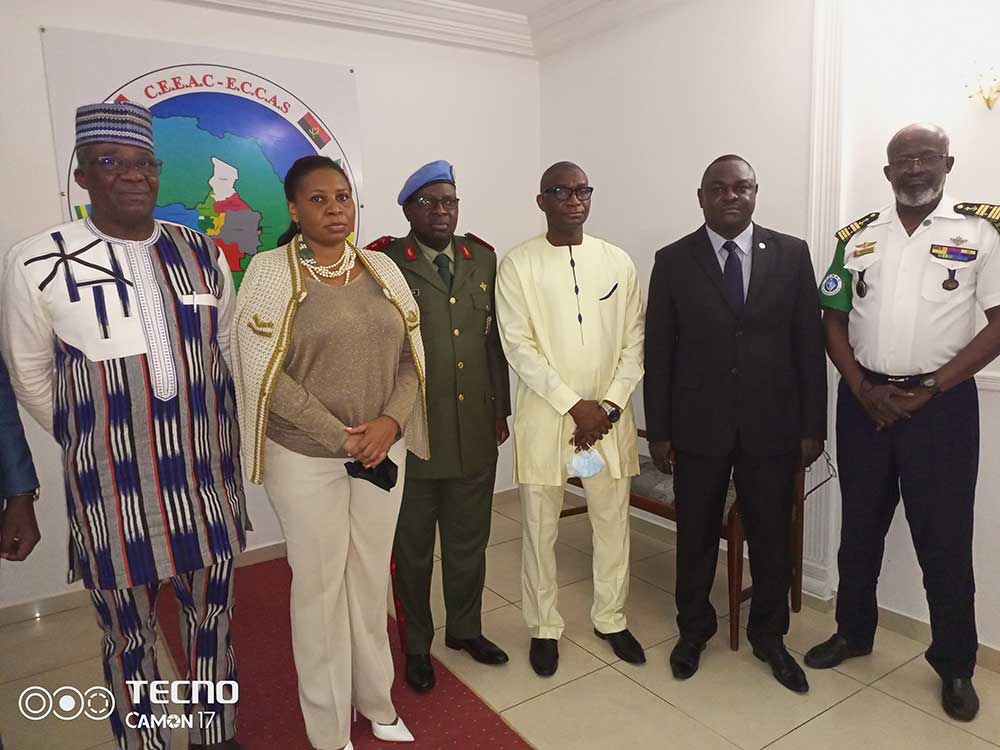 Libreville(Rép. Gabonaise), le 28 juillet 2021La délégation de la Force en Attente de la Communauté Economique des États de l’Afrique de l’Ouest(FAC-CEDEAO) a foulé le sol gabonais hier. Pour des raisons de contraintes sanitaires liées au Covid -19, les quatre membres de la délégation de la FAC-CEDEAO ne sont rentrés réellement en contact physique avec leurs homologues de la Force Multinationale de l’Afrique Centrale (FOMAC) qu’aujourd’hui où la délégation a entamé sa mission par une visite de courtoisie à la Vice-Présidente de la Commission de la Communauté Economique des États de l’Afrique Centrale(CEEAC), son Excellence Francisca TATCHOUOP BELOBE.