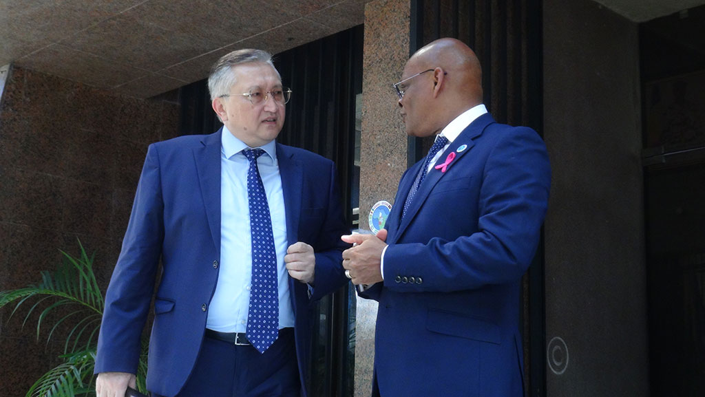 Libreville (Rép. Gabonaise), le 12 octobre 2022- L’ambassadeur extraordinaire et plénipotentiaire de la Fédération de Russie en République Gabonaise et auprès de la CEEAC son Excellence Ilya F. Iskandarov a été reçu par le Président de la Commission de la Communauté Economique des Etats de l’Afrique Centrale(CEEAC) son Excellence Gilberto Da Piedade Verissimo.