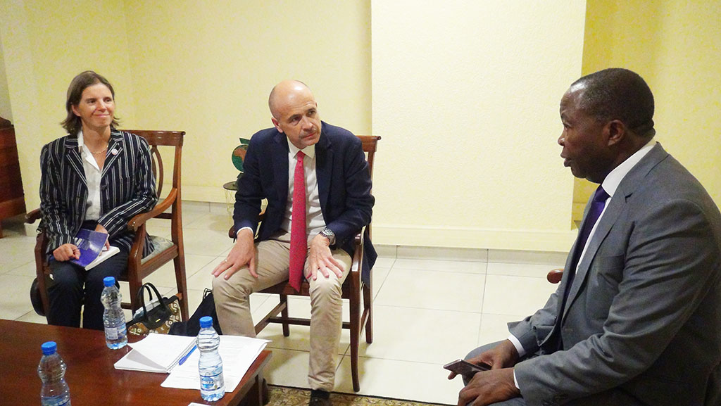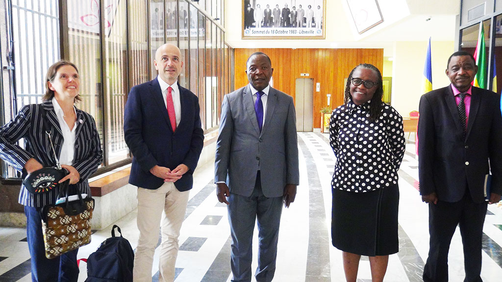 Le Commissaire en charge de l’Environnement, des Ressources Naturelles, de l’Agriculture et du Développement Rural (DERNADR), Docteur Honoré TABUNA, a reçu ce mercredi 19 Octobre, au siège de la Communauté Economique des Etats de l’Afrique Centrale(CEEAC), une délégation de l’Agence Française de Développement (AFD)conduite par son Directeur régional pour l’Afrique centrale basé à Douala au Cameroun, Monsieur François Jacquet.
