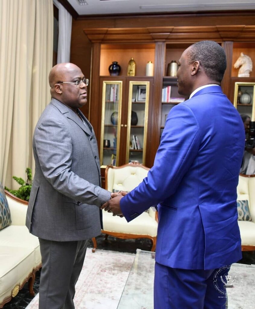 Kinshasa (Rép. Démocratique du Congo), le 02 mai 2023- Le Président de la République Démocratique du Congo Son Excellence Félix Antoine Tshisékédi Tshilombo a reçu en audience, le Président du parti d’opposition du Tchad « Le Réformateur » Monsieur Succès MASRA en présence du Président de la Commission de la Communauté Economique des Etats de l’Afrique Centrale (CEEAC), l’Ambassadeur Gilberto Da Piedade Verissimo, du Représentant Spécial du Secrétaire général de l’ONU, Chef du Bureau Régional des Nations unies pour l’Afrique Centrale (UNOCA) son Excellence Abdou Abarry et du ministre congolais du tourisme et envoyé spécial de la CEEAC pour la crise tchadienne Didier Mazenga Mukanzu.