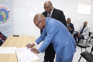 The ceremony took place at the headquarters of the Center for Renewable Energy and Energy Efficiency of Central Africa in Luanda, in the presence of Manuel QUINTINO, Secretary of State for Water at the Ministry of Energy and Water and Mrs. Marie Chantal Thérèse MFOULA EDJOMO, Commissioner in charge of the Territorial Planning and Infrastructure Department of the ECCAS Commission, and the Ambassador Guy Blaise NAMBO WEZETGabon’s Ambassador to Angola, senior officials from the Ministry of Energy and Water and the Ministry of External Relations, representatives of energy companies in the Republic of Angola and the Head of the Renewable and New Energy Department of the ECCAS Commission. Désiré Ndemazagoa