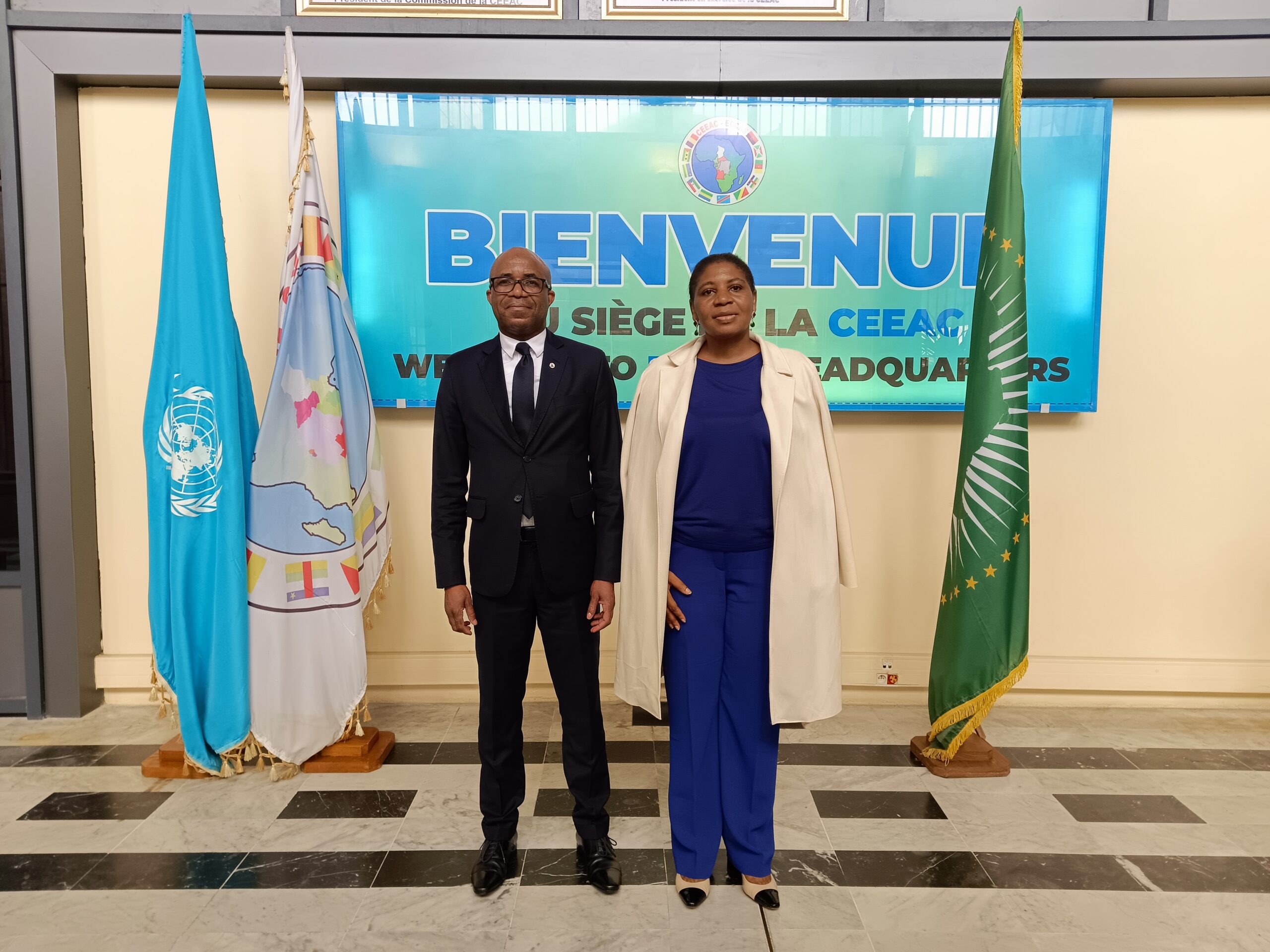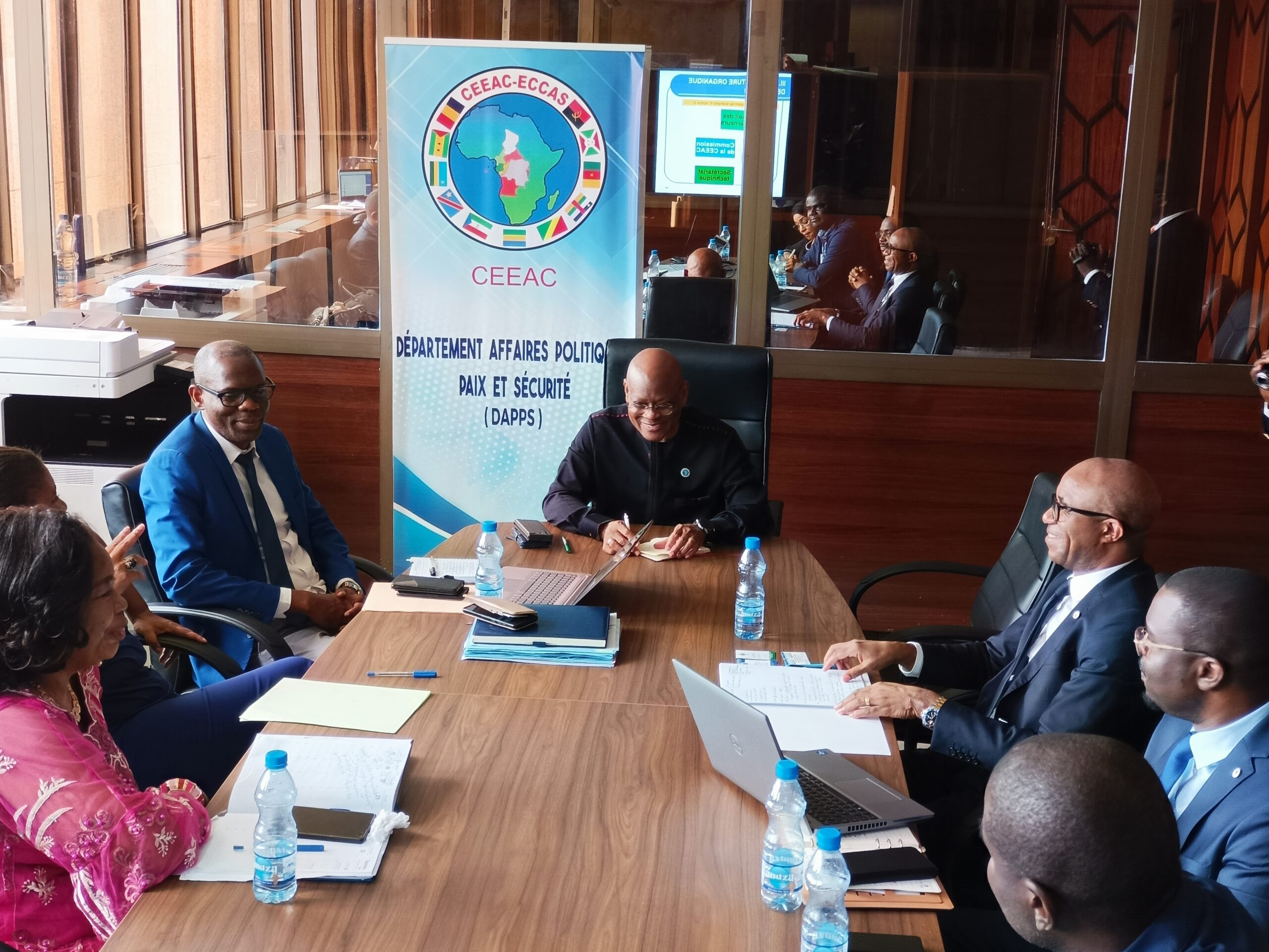 Sous la présidence de Son Excellence Monsieur l’Ambassadeur Gilberto da Piedade Verissimo Président de la Commission de la CEEAC et la coordination de Son Excellence Madame Francisca TATCHOUOP BELOBE, Vice-Présidente de la Commission de la CEEAC, en présence des Commissaires et des hauts fonctionnaires de la CEEAC, il s’est tenu le 12 Avril 2024 une réunion de travail avec la Banque de Développement des Etats de l’Afrique Centrale (BDEAC) représentée par son Vice-Président Monsieur Jean Paterne MEGNE EKOGA et le Représentant Résident au Gabon Monsieur Yourdy ROKU GAETJENS.