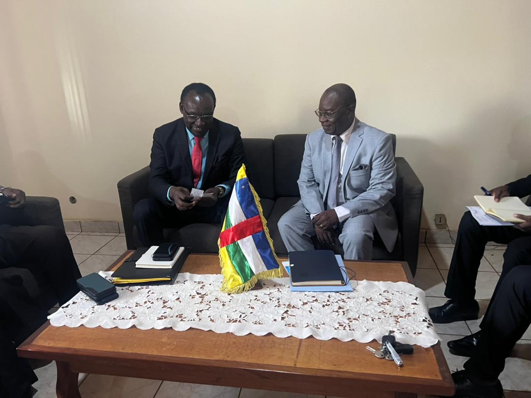 Bangui (Rép. Centrafricaine), le 26 juin 2024– Une mission de la CEEAC conduite par le Commissaire en charge du Marché Commun, Affaires Économiques, Monétaires et Financières de la Commission de la CEEAC, son Excellence François Kanimba, a séjourné en République Centrafricaine, les 24 et 25 juin 2024 en vue d’engager un dialogue de haut niveau avec les autorités dans la perspective de l’opérationnalisation de la zone de libre-échange de la Communauté dans ce pays.