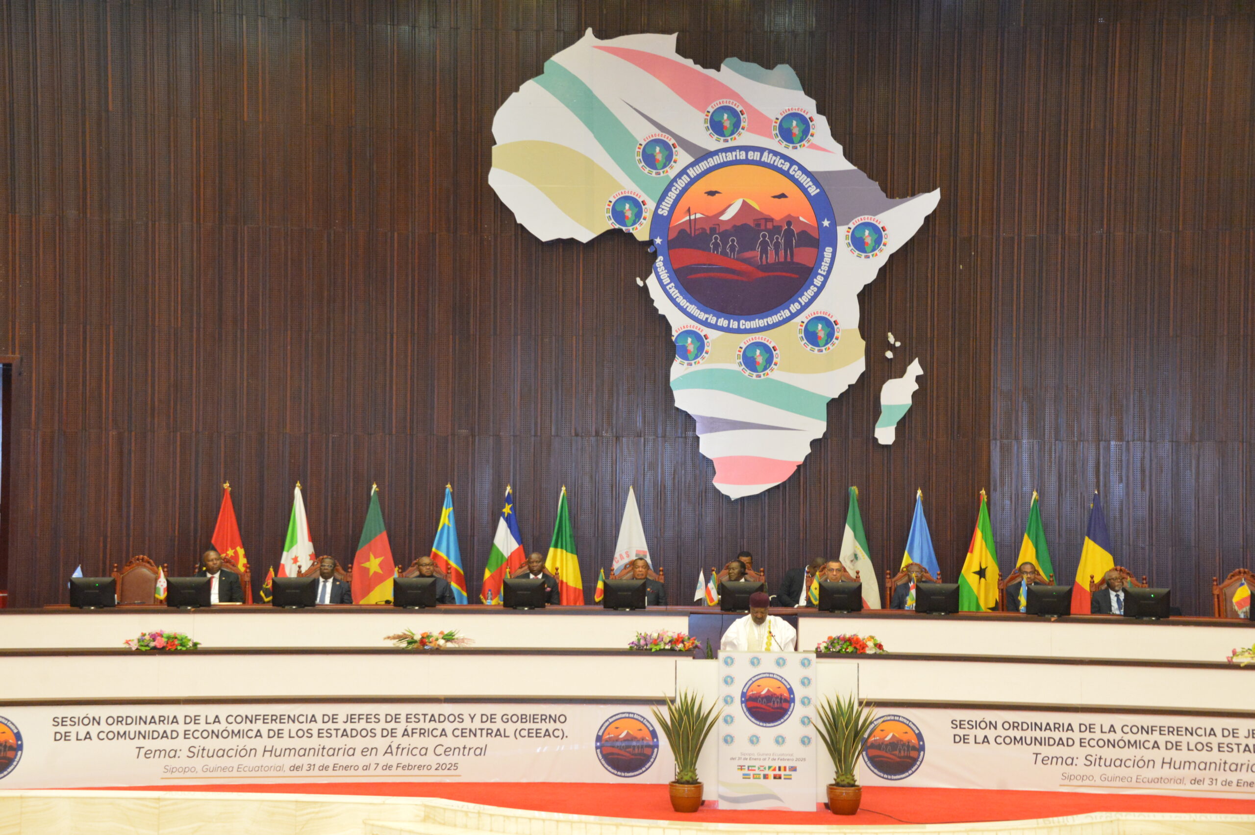 Malabo (Rép. de Guinée Equatoriale), le 07 Février 2025 – Sur Convocation du Président en Exercice de la Communauté Economique des Etats de l’Afrique Centrale (CEEAC), Président de la République de Guinée Equatoriale, Son Excellence Teodoro OBIANG NGUEMA MBASOGO, Malabo a accueilli la VIème Session Extraordinaire de la Conférence des Chefs d’Etat et de Gouvernement de la Communauté Economique des Etats de l’Afrique Centrale sur la Situation Humanitaire en Afrique centrale.