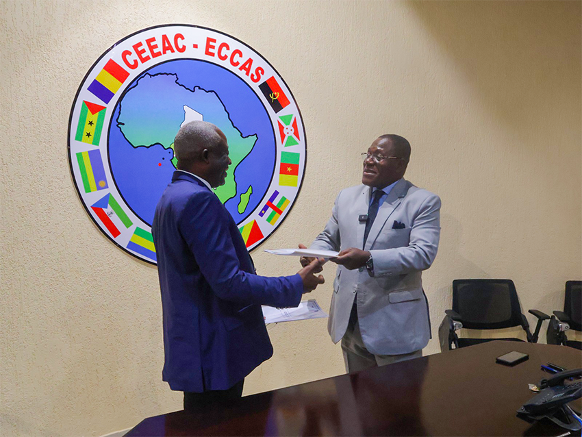 Libreville, 30 Juin 2025 – Le nouvel Agent Comptable Central de la Communauté Économique des États de l’Afrique Centrale (CEEAC) Monsieur MONZALA Etienne Franck Borley a officiellement pris ses fonctions lors de la cérémonie organisée au siège de la Commission de la CEEAC, basé à Libreville en République Gabonaise. Présidé par Madame Maria do Carmo SILVEIRA, Secrétaire Général par intérim de la Commission, représentant l’Ambassadeur Gilberto da Piedade VERISSIMO, Président de la commission de la CEEAC, Ladite cérémonie a eu lieu en présence de fonctionnaires et collaborateurs de la CEEAC.