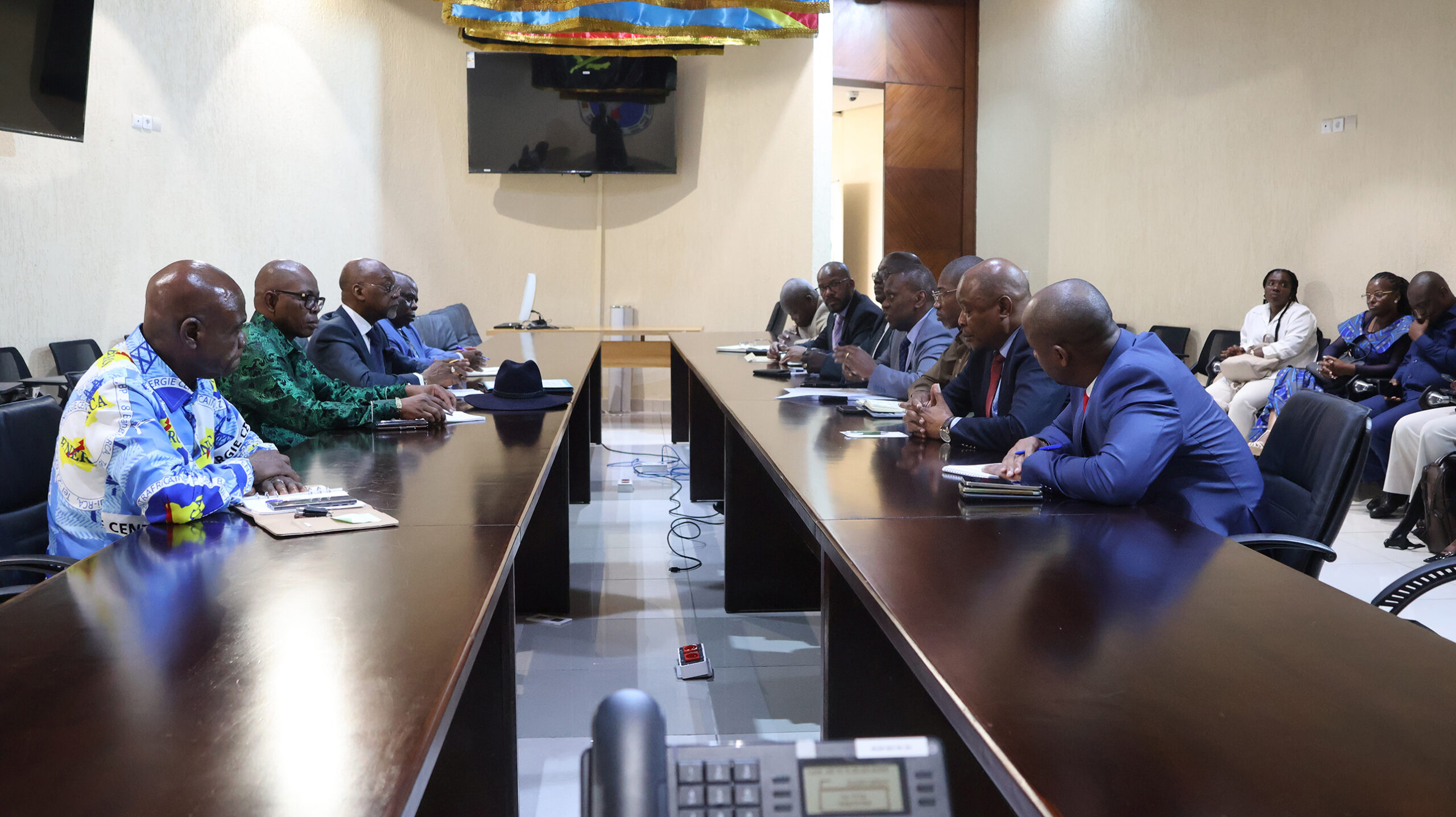 Ont aussi pris part à cette audience Messieurs Atadet AZARAK MOGRO et Désiré NDEMAZAGOA BACKOTTA, respectivement Secrétaire Permanent du PEAC et Directeur de l’Énergie de la Commission de la CEEAC, ainsi que des cadres de la Société de Transport d’Électricité d’Angola (RNT-EP), des Experts de la Commission de la CEEAC et du Secrétariat Permanent du PEAC.