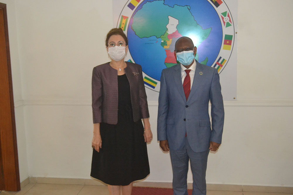 En visite de courtoisie, L’Ambassadeur de Turquie au Gabon et auprès de la Communauté Économique des États de l’Afrique centrale (CEEAC), Son Excellence Madame Nilüfer Erdem KAYGISIZ a été reçu en audience par son Excellence Monsieur l’Ambassadeur Gilberto Da Piedade VERISSIMO, Président de la Commission de la CEEAC à son cabinet de travail sis au haut de Gué Gué à Libreville, ce jeudi 20 mai 2021.