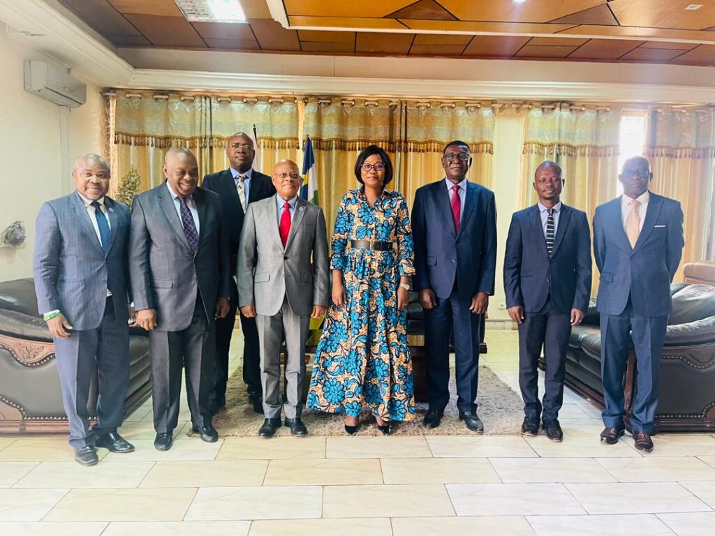 Bangui (République Centrafricaine), le 08 février 2024-Sur invitation du Chef de l’Etat Centrafricain, le Président de la Commission de la Communauté Economique des Etats de l’Afrique Centrale (CEEAC), son Excellence Ambassadeur Gilberto DA PIEDADE VERISSIMO a effectué du 04 au 06 février 2024 une visite de travail en République Centrafricaine. Au cours de celle-ci, le Président de la Commission a été reçu par le Président de la République Centrafricaine le Professeur Faustin Archange TOUADERA, par la Ministre des Affaires Etrangères et des centrafricains de l’étranger, son Excellence, Madame Sylvie BAÏPO-TEMON.